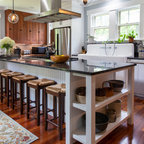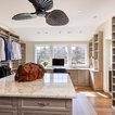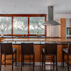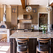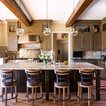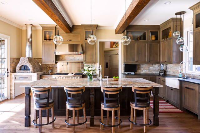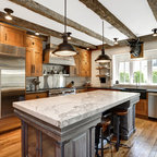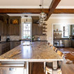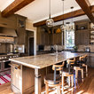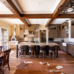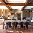 hood over range with ceiling beams