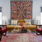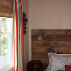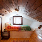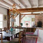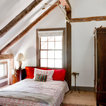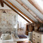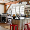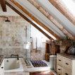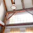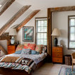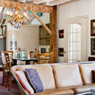 The mix of materials, the beams (while we don't like rustic) add architectural interest. We would prefer a room that was a shape other than a rectangle or square.
