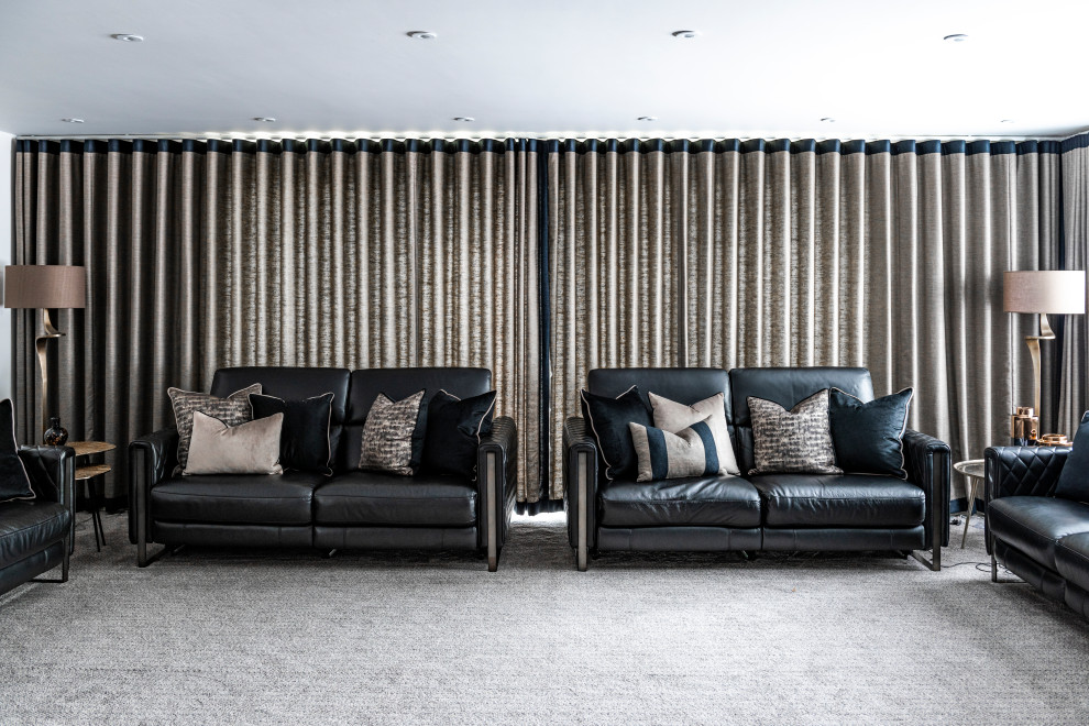 For this Bar room we selected the fabrics for detailed custom wave curtains and complentary custom cushion collection to add the finishing touches to this enterainment space.