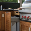 To assist with food prep, positioned underneath the counter to the left of the Wolf outdoor grill is a pull-out bin with separate compartments for food waste and recycling. Additional storage to the right is utilised for storing the LPG gas canister ensuring the overall look and feel of the outdoor kitchen is free from clutter and from a practical point of view, protected from the elements.