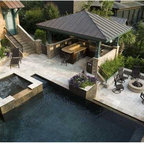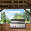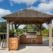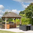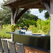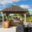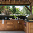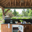 Just like the indoor kitchen, the key to a successful outdoor kitchen design is the zoning of the space – think about all the usual things like food prep, cooking and clearing away and make provision for those activities accordingly. In terms of the actual positioning of the kitchen think about the sun and where it is during the afternoons and early evening which will be the time this outdoor kitchen is most in use. A timber gazebo will provide shelter from the direct sunlight and protection from the elements during the winter months. Stone flooring that can withstand a few spills here and there is essential, and always incorporate a seating area than can be scaled up or down according to your entertaining needs.