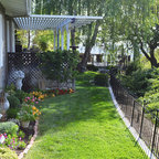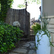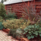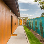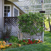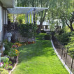рисунок чёрных квадратных труб основной ограды га салатном фоне соседского забор с чевера продолжит основную ограду
