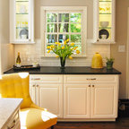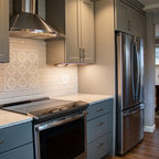 Cabinet color. Benjamin Moore, Revere Pewter and Down Pipe.(on island)
