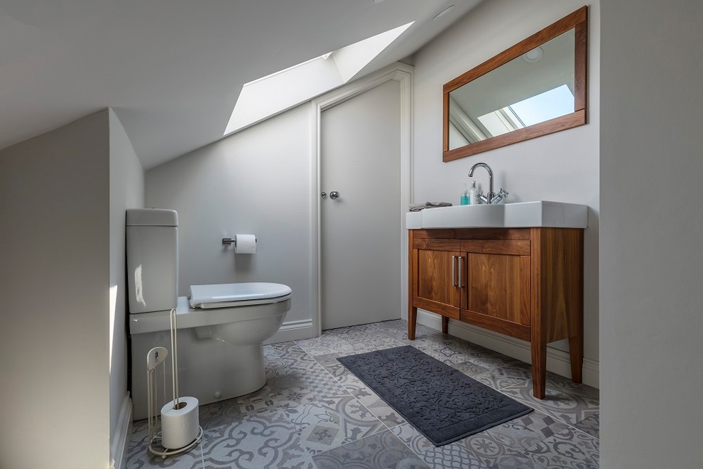 Attic bathroom conversion. Bathroom tiles and toilet from TileStyle. Photography by: Daragh Muldowney