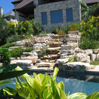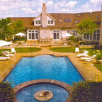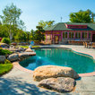 This ultra-luxurious pool in Massachusetts featured a dive rock, waterfall and incredible design selections. The swimming pool is complimented by a pool house, patio seating and an expansive deck that's material came from a mountain range in Maine.
