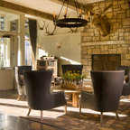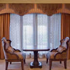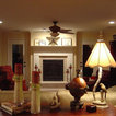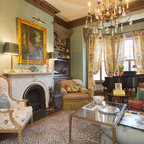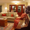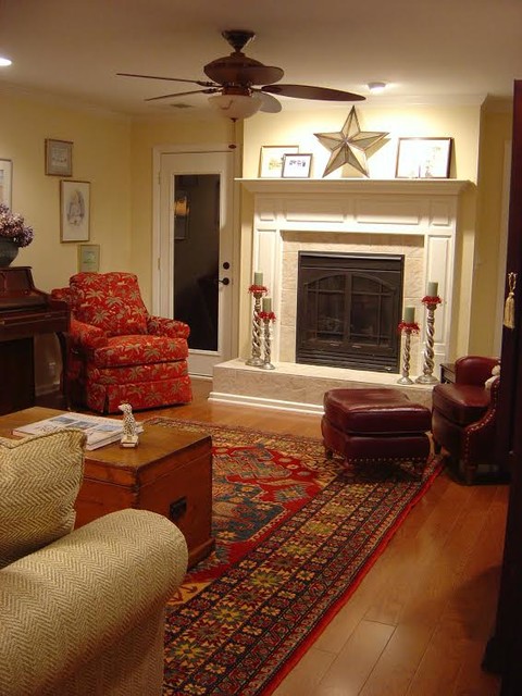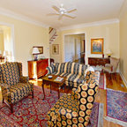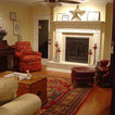 -dark stained wood -oriental rugs -historic colors -antique furniture
