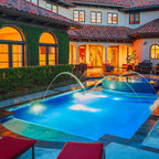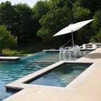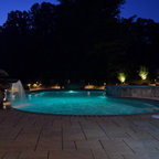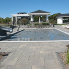 Located on the south shore, this project was one of our pools in Massachusetts that featured a raised spa and a rectangular pool design. As the centerpiece of the backyard, this swimming pool is complimented by plenty of seating, a playground and some luscious landscaping.