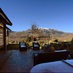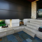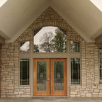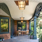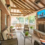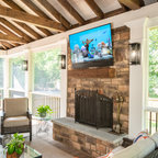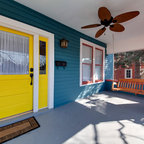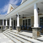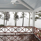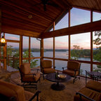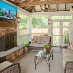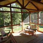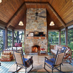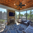 Screened in porch with ceiling fan. I like the slate as well (like nanas stone porch)