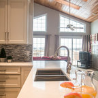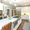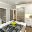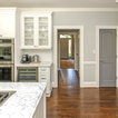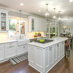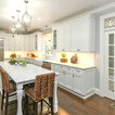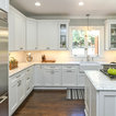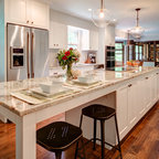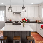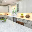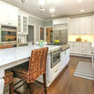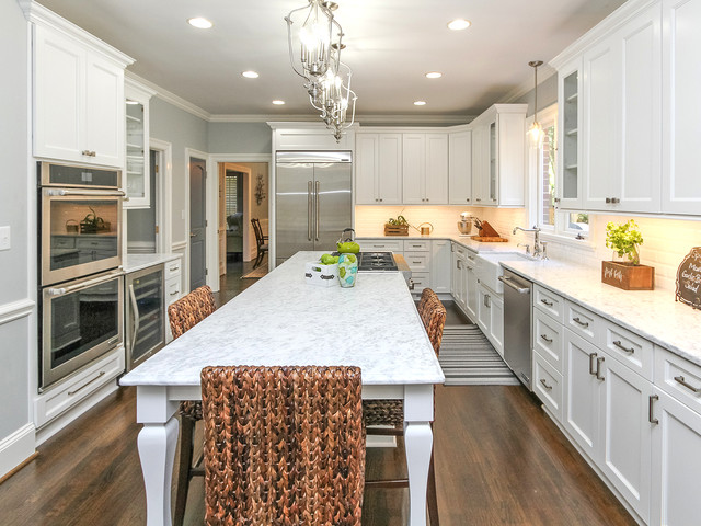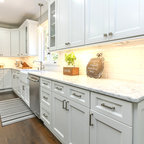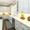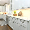 White shaker cabinets and a farmhouse sink for this elegant kitchen renovation.