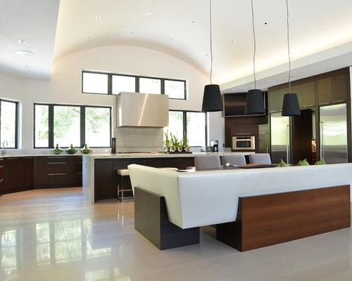 The entry herringbone floor pattern leads way to a wine room that becomes the jewel of the home with a viewing window from the dining room that displays a wine collection on a floating stone counter lit by Metro Lighting. The hub of the home includes the kitchen with midnight blue & white custom cabinets by Beck Allen Cabinetry, a quaint banquette & an artful La Cornue range th ...