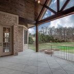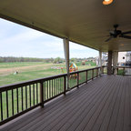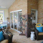 Knotty pine walls with eleven sliding windows and Trex decking on floors