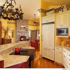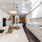 Two different colour cabinets love stools like the idea of breakfast bar and being able to watch the cooking happening