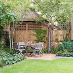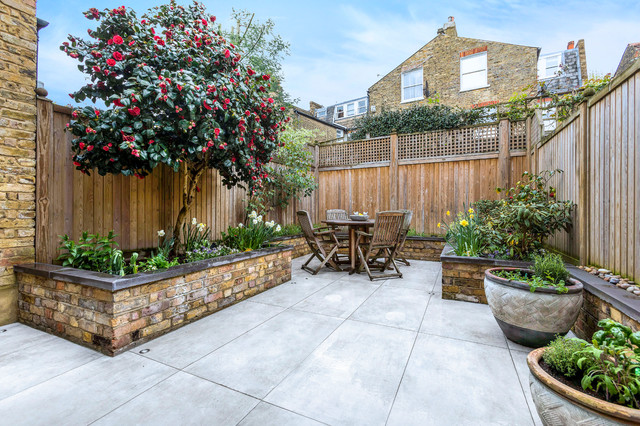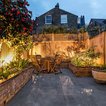 I like raised planets along the fence to allow for better soil and also to give some height to disguise fence. Prefer reclaimed or other wood to look more natural.