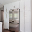 Two large 36" pantries with a counter depth fridge creates a perfectly symmetrical wall.