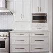 Notice the different length of cabinet and drawers pulls, the different sizes design fits each cabinet size perfectly.